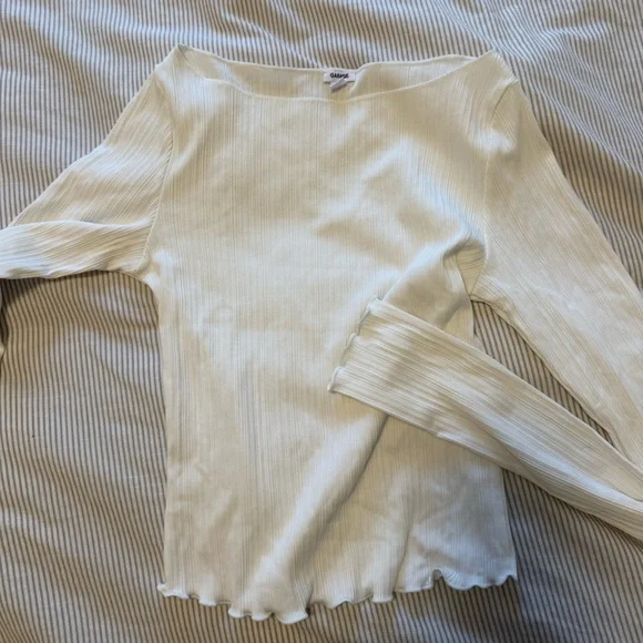 GARAGE - cream ribbed top with long sleeves. excellent condition