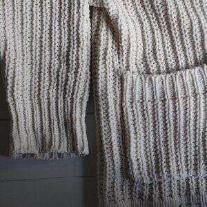 This cream open style cardigan is made in a chunky shaker knit with chenille, so it's super soft and cozy. Oversized style is ideal for styling as a layering piece with leggings, mini uggs. Features two front pockets and a long fit for optimal function and comfort.