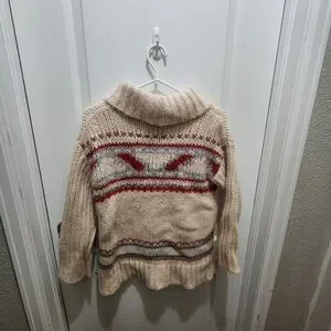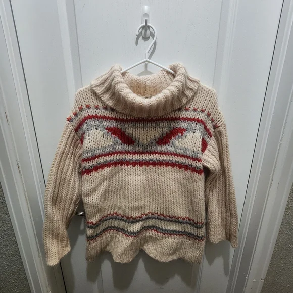 Stay warm and stylish with this cozy cream sweater featuring a charming pattern.