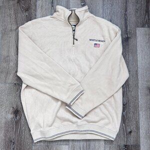 Cream quarter zip vintage sweater with "Myrtle Beach" embroidery.
