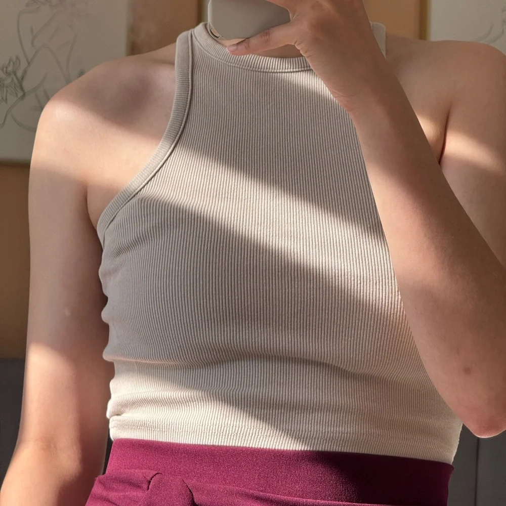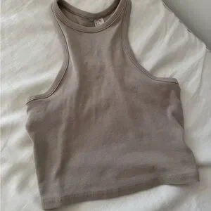 This H&M stylish cream ribbed tank top is great for layering or wearing on its own, this top offers both comfort and versatility.