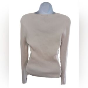 Stylish cream ribbed sweater with a square neckline. Perfect for layering.