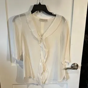 Chic cream blouse with ruffle detail. Lightweight and stylish. Ideal for versatile wear.