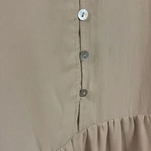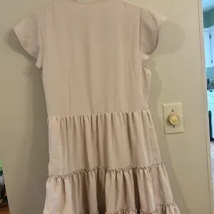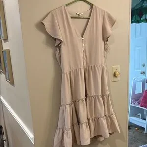 Elegant cream dress with ruffle sleeves and tiered skirt. Perfect for any occasion. Side zipper.