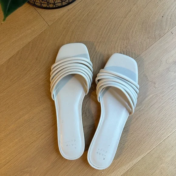 A New Day Sandals - cream colour with cushioned sole - small block heel