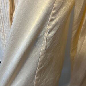 Cream / light yellow / beige 100% silk blouse with fun details and interesting diagonal buttons, marketed to women.