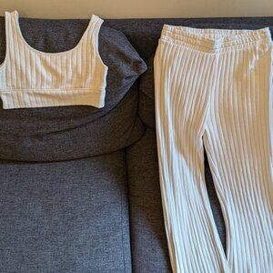 Cream Z Supply Matching Lounge Wear Set — Super Soft Ribbed Pants + Bra