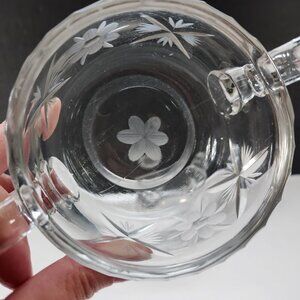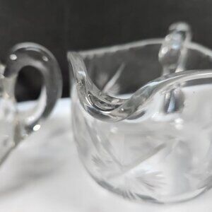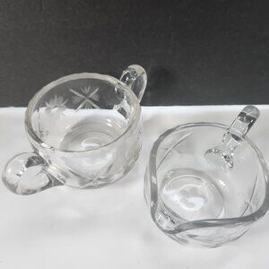 Cream and Sugar Set Vintage Lead Crystal Etched Flowers Heavy Glass