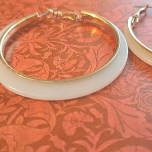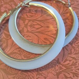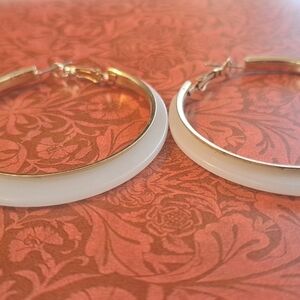 These delicate hoop earrings are a study in understated elegance. Crafted with a focus on lightness, they feel nearly weightless on the ears, making them perfect for all-day wear. The slim, gold hoops provide a subtle warmth and shine, catching the light with a soft glimmer. A light cream, whether applied through delicate enamel or a carefully chosen bead, adds a touch of sophistication and softens the overall look. The combination of light gold and cream creates a versatile aesthetic that easily transitions from casual daytime looks to more dressed-up evening ensembles. The subtle coloring allows them to complement a wide range of outfits, making them a reliable and stylish choice for any jewelry collection.