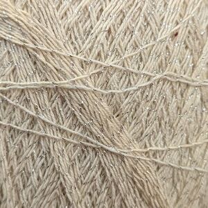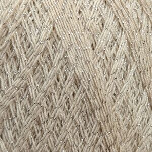 Enhance your crafting projects with this elegant cream yarn featuring subtle silver accents. Perfect for adding a touch of sophistication to any creation.