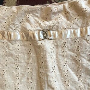 Cream eyelet Mini Skirt with Ruffled Hem with lining. 30” around 30” length.used