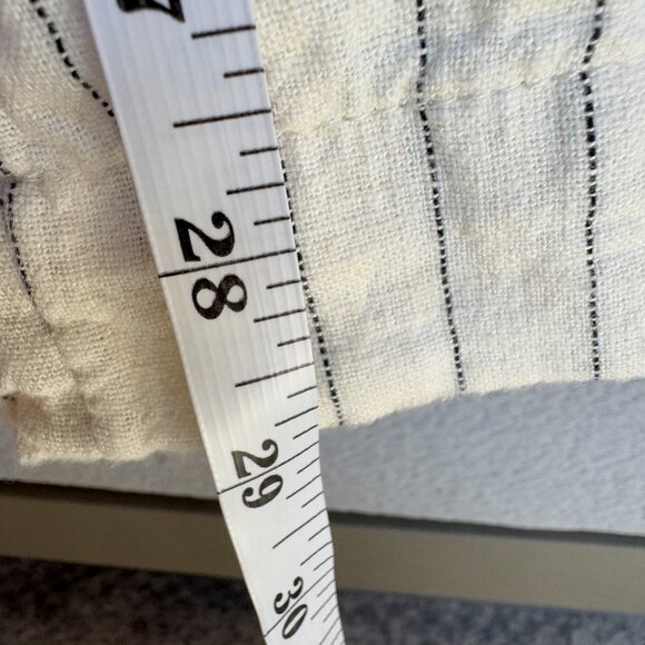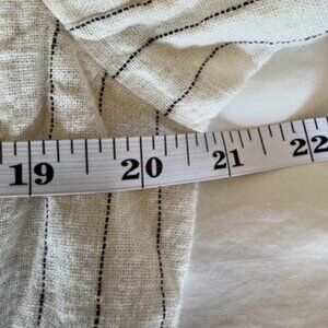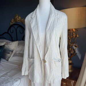 Cream with black pinstripes linen blend relaxed suit, size M/10 by A New Day. Single breasted, drop waist blazer, wide leg pants. Excellent condition. 55% linen 45% rayon. Cat friendly, nonsmoking home.