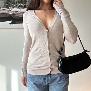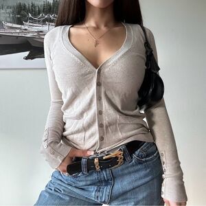 Cream/Beige Preppy Minimalist Lowcute Cardigan top