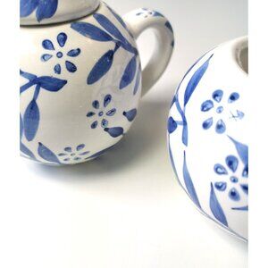 Creamer and Sugar Bowl Hand Painted Beautiful Botanical Blue and White Vintage