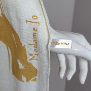 I'm not sure how or where this scarf came to be - Redken logo on one end and an art piece signed Madame Jo on the other. there is nothing I can find on this. but this a beautiful and soft 100 pashmina.