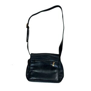black leather shoulder bag, vintage crossbody purse, Toledano handbag, 90s minimalist style, genuine leather purse, women’s everyday bag, adjustable strap crossbody, gold buckle detail purse, structured leather handbag, vintage leather bag
