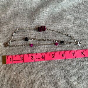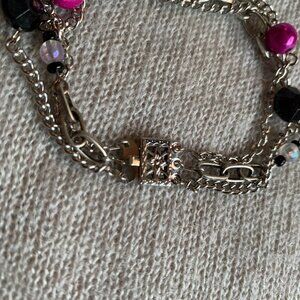 Creation - Recycle fabric Pompom bracelet beads chains Purple black