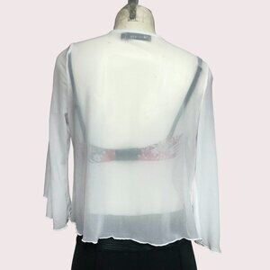 Creations White Sheer Mesh Long Sleeve Tie Front Cover Up Size Small (fits big)