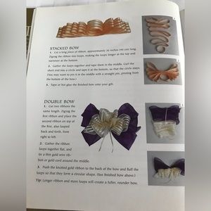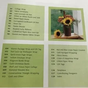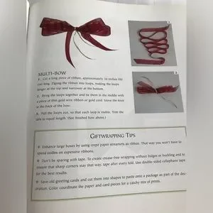 This hard cover 128 page instructional book provides ideas, inspirations, tips and techniques to help your gift wrapping to go from simple to spectacular.