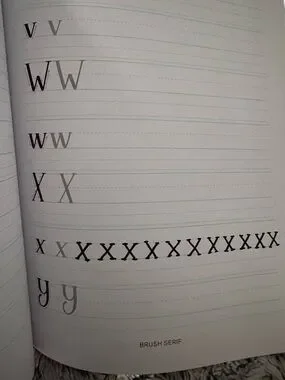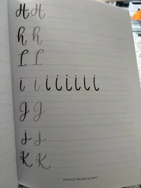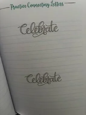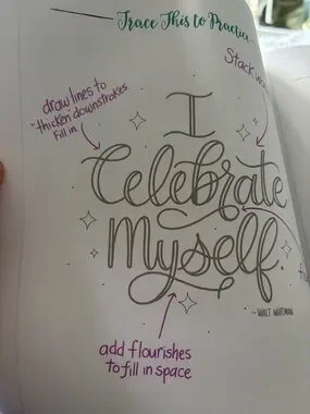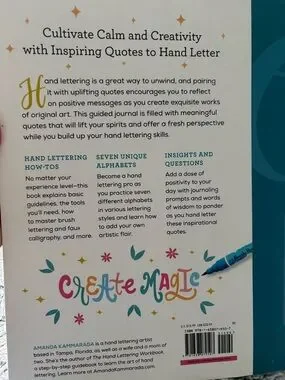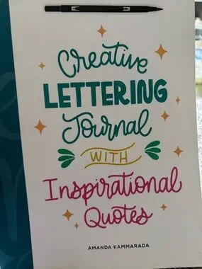 Includes inspirational quotes and guided lettering prompts designed to inspire creativity and improve hand lettering skills. A few pages are partially used where I practiced.