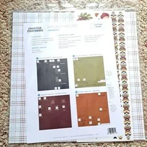 Creative Memories Project Recipe Kit (Croptoberfest 2022) with colorful designer papers. Includes navy, green, cranberry, and orange papers.
