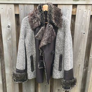 Creenstone virgin wool/angora wool blend brown tweed coat - size 6