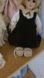 Charming porcelain doll with a brown dress and cream blouse. Features blonde hair and unique eye detail. Missing 1 eye