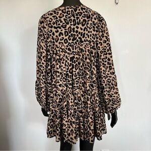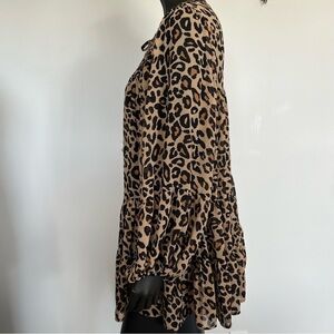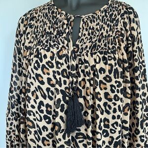 Crescent Leopard Print Smocked Peasant Dress Tunic - Size Small