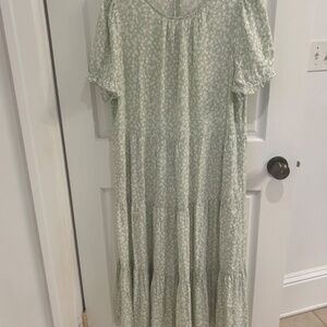 Light green with white flowers, tiered dress with pockets light weight