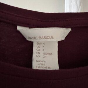 Bundle of 4 crew neck t-shirts (1 burgundy, 1 black, 2 white), all XS