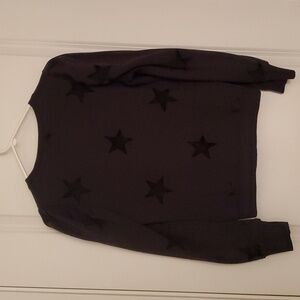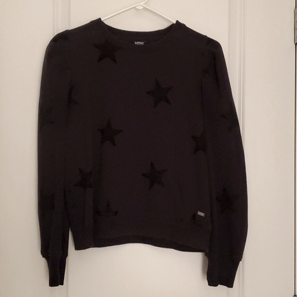 Buffalo David Bitton - crew neck sweatshirt material top with velour stars and ruffle shoulder detail in sz small. In good condition.