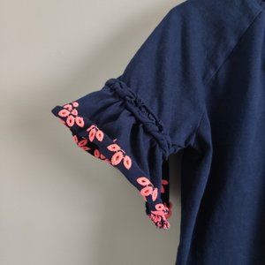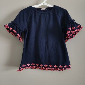 Crewcuts Crew Neck Flutter Sleeve Embroidered Top Navy Size 6-7