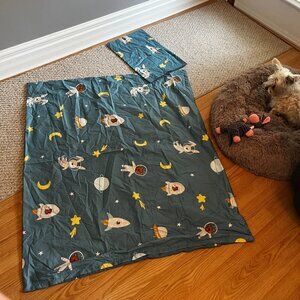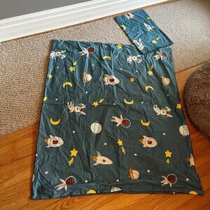 Crib Toddler Bed Duvet Cover and Pillow Case Blue Space Astronauts Stars