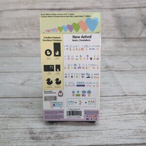 The cartridge is designed for use with a Cricut cutting machine to create designs for baby albums or baby shower decor.