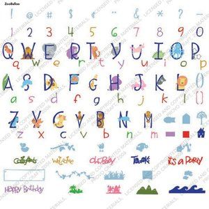 This adorable font cartridge combines letters and animals for a truly unique look! Also included are several scenic backdrops (mountains, trees, water) and 6 phrases. This cartridge is great for scrapbooking, card making, and creating fun name plates!
