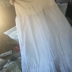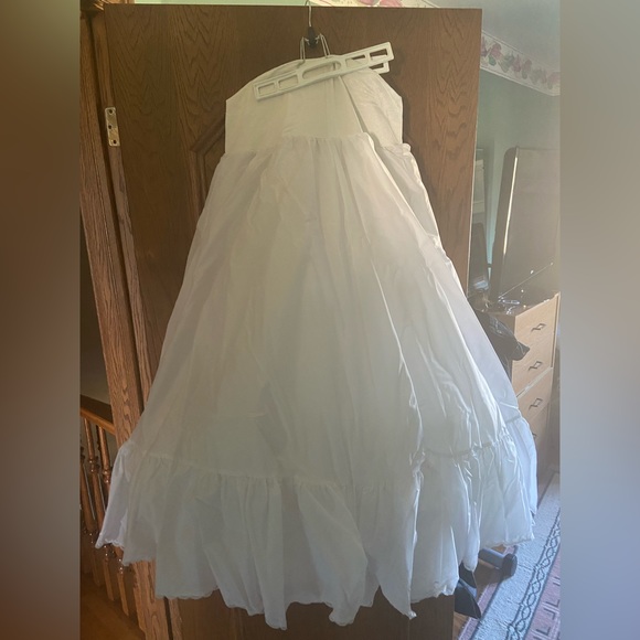 Plain white crinoline, worn once, good condition, 1 inch area where thread separated from elastic. Been cleaned and steamed after wear.