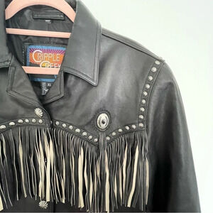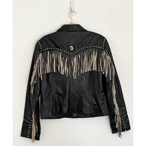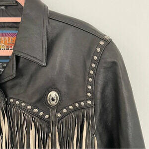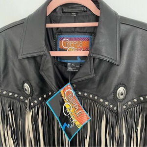 Cripple Creek Vintage Leather Fringe Jacket Coat Black Sz XL
