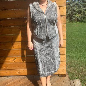 Crisca Grey Midi Skirt and Vest Two Piece Set