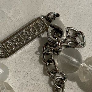 Crisca Silver Tone Rose Faux Pearls And Opals White Beads Necklace