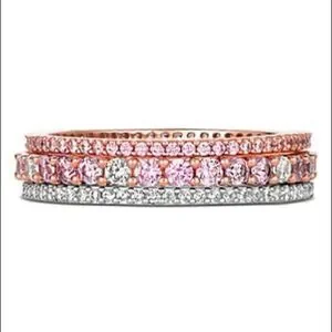 Embellished Stackable Rings in Platinum-Plated Sterling Silver, 18K Gold-Plated Sterling Silver or 18K Rose Gold-Plated Sterling Silver, Set of 3