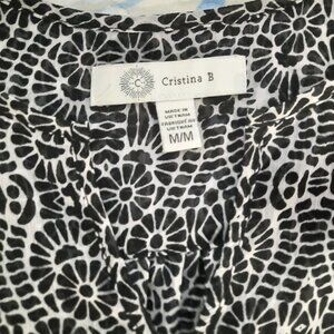 Cristina B black/white print sleeveless top, Size M