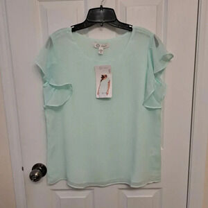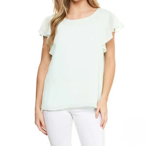 Cristina B Flutter Sleeve Top Pale Green Women's Small Lightweight Shirt