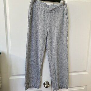 Cristina B Linen Blend Pants Womens M Blue White Stripe Flowy Coastal Beach