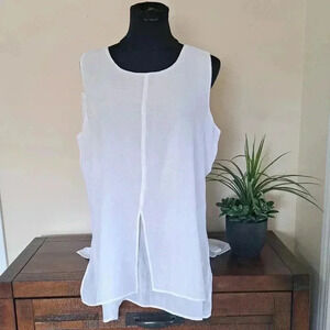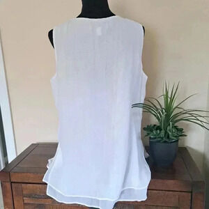 ❤️ Cristina B White Flowy Sleeveless Top Medium Tunic Blouse Lightweight Shirt