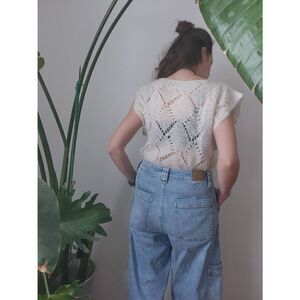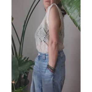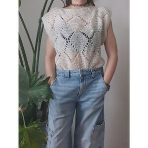 Crochet 70s Vintage Soft Top Sleeveless Tank Cute Sheer Spring Vintage