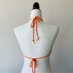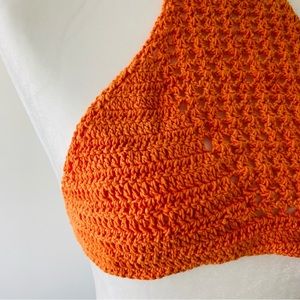 Bright orange crochet knit top. Perfect to wear to beach, or a hot summer day.