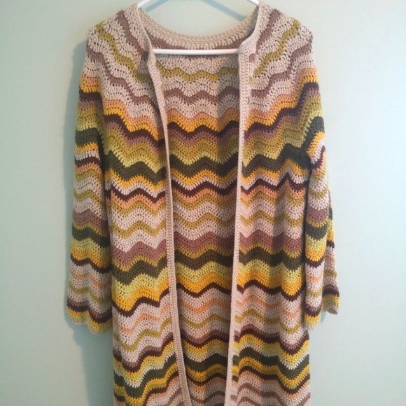 Vintage handmade crochet cardigan. Beautiful, bright, and bold. The cardigan will fit sizes S/M and is in great condition with no damage.