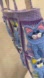 Charming crochet tote bag with colorful cat patterns. Features purple, blue, yellow, and cream colors.