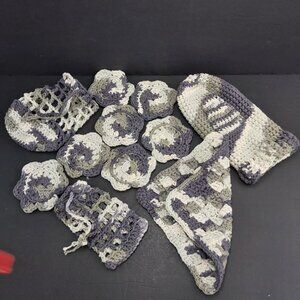 Crochet Eco-Friendly Spa Set 11 Pieces Cloth Pads Mitt Pouches Gray Shades New