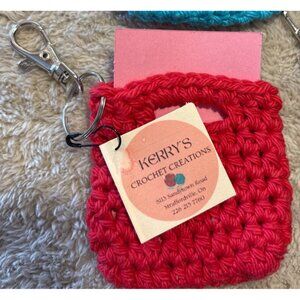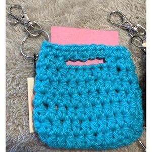 Crochet Keychain Coin Purse Card Holder Set Of 6 With Clip Hook 2.75 X 2.75 "